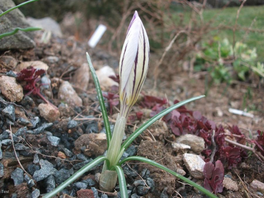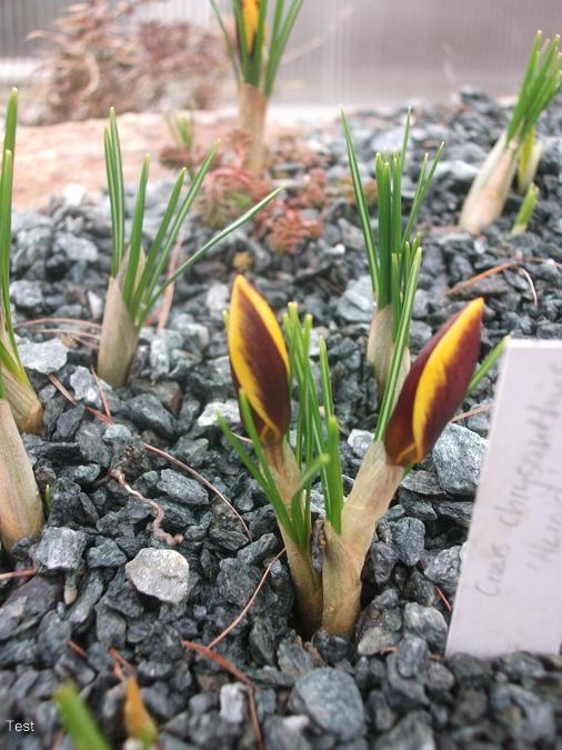 Crocus vernus s.l. seedlings derived from the form named National Park.  Not all have this interesting pattern of the petals.