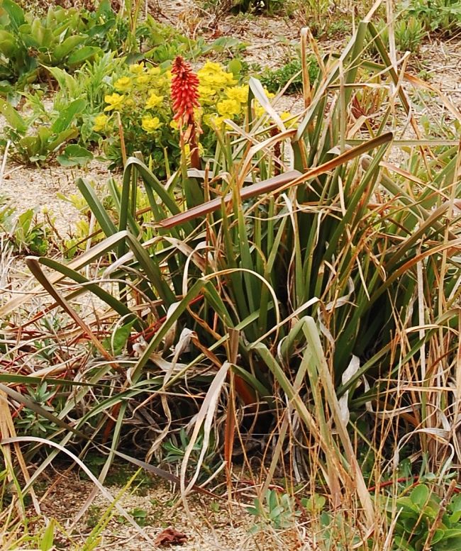 I hadn't expected to see a Kniphofia in bloom today.............
